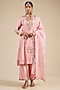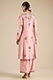 Featuring a pink kurta in silk base, adorned with latkans embroidery. It is paired with pants and a dupatta. Accentuate it with polki dangler earrings and wedges for festive occasion, haldi or sangeet ceremony.