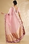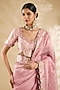 Featuring a pink saree in silk organza base with embellishment. It is paired with an embroidered blouse. Accentuate it with statement jewellery and heels for weddings.