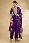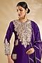 Featuring a purple tunic in silk and organza base with dori work. It is paired with printed pants and a dupatta. Accentuate with statement earrings and heels for a festive occasion or sangeet ceremony.