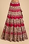 Featuring a red lehenga in silk base with scallop embroidery. It is paired with an embroidered blouse and an embroidered dupatta. Accentuate the designer lehenga with kundan polki or gold jewellery, a sleek bun, embellished heels and a potli bag for a bridal look, Perfect wear for your wedding or engagement ceremony.