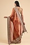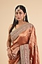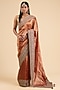 Featuring a red saree in tissue base with nandi motif border and embroidery. It is paired with a blouse. Accentuate it with statement jewellery and heels for a wedding or sangeet ceremony.