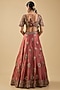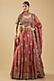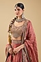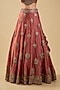 Featuring a rust lehenga in handloom silk base with thread and mirror embroidery. It is paired with an embroidered blouse and a dupatta. Accentuate it with traditional kundan or temple jewellery, a soft braided hairstyle or classic bun, and embellished heels or heels for a timeless bridal look.