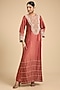 Rust Handloom Tissue Thread & Moti Embroidered Tunic Set