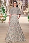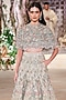 Featuring a beige lehenga in organza base with sequins hand embroidery. It is paired with an embroidered cape. Accentuate the designer lehenga with swarovski or pearl jewellery, embellished heels and a clutch for a bridal look, Perfect wear for a roka ceremony, sangeet nights or destination weddings.