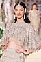 Featuring a beige lehenga in organza base with gota and zardosi hand embroidery. It is paired with an embroidered cape. Accentuate the designer lehenga with swarovski or pearl jewellery, embellished heels and a clutch for a bridal look, Perfect wear for a roka ceremony, sangeet nights or destination weddings.