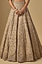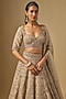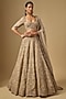 Featuring a beige lehenga in raw silk base with dori work It is paired with a blouse and a dupatta. Accentuate it with zircon jewellery, embellished heels and a potli for a wedding, engagement or sangeet ceremony.