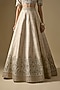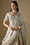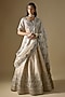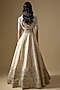 Featuring a beige Lehenga in raw silk base with zardosi embroidery. It is paired with an embroidered blouse and dupatta. Style with polki jewelry, soft curls, and embellished heels to exude timeless bridal elegance.