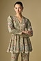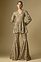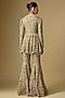 Jayanti Reddy features a stunning beige sharara set, which is crafted in viscose georgette fabric with embroidery. It is paired with a peplum top. Accessorise the designer set with polki jewellery and heels for festive occasion or sangeet ceremony.