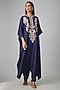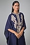 Featuring a blue kaftan in silk base with thread work. It is paired with palazzo. Accentuate it with polki earrings and block heels for festive celebrations or pooja ceremony.