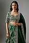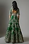 Featuring an emerald green lehenga in raw silk base with zardosi embroidery. It is paired with an embroidered blouse and a dupatta. Accessorize it with statement jewellery and heels for weddings or sangeet ceremonies.