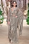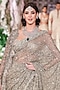 Featuring a golden beige saree in net base with sequins hand embroidery. It is paired with an embroidered bustier and an embroidered dupatta. Accentuate the designer saree with swarovski or emerald jewellery, embellished heels and a clutch for a bridal look, Perfect wear for destination weddings, receptions or engagement ceremony.