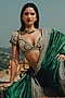 Jayanti Reddy features a rich green saree set, which is crafted in silk fabric with zardosi hand embroidery. It is paired with an embroidered blouse. Accessorise the designer set with polki jewellery and heels for any engagement or wedding ceremony.