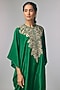 Featuring a green kaftan in silk base with zardosi work. It is paired with palazzo. Style with polki jewellery, soft curls and embellished heels for festive soirees or mehendi ceremony.