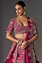 Featuring a hot pink lehenga in silk base with zari embroidery. It is paired with an embroidered blouse and a dupatta. Accentuate this designer lehenga set with statement jewelry and heels for a bridal look.