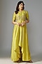 Featuring a lime green anarkali in silk base with zari embroidery. It is paired with palazzo pants. Accentuate with statement jewellery and heels for a complete festive ready-look.