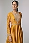 Featuring a mango yellow anarkali in raw silk and silk base with zardosi work. Accentuate it with kundan polki earrings, a clutch and metallic heels for a stylish ensemble, ideal for festive occasions, cultural celebrations or haldi ceremonies.