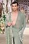 Featuring a mint green jacket in georgette base with zardosi hand embroidery. It is paired with a shirt, pants, two dupattas and a belt. Style it with shoes for a complete look, exuding charm and elegance.