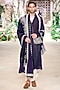 Featuring a purple kurta in georgette base with zardosi hand embroidery. It is paired with dhoti and two dupattas. Style it with mojaris and a stole and a festive occasion, wedding or engagement ceremony.