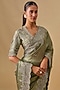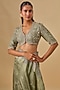 Featuring a mint green saree in banarasi silk base with zardosi embroidery. It is paired with an embroidered blouse. Accentuate it with dangler earrings and heels for a festive occasions or wedding ceremonies.