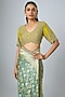 Featuring a mint green saree in banarasi base with zardosi embroidery. It is paired with a mustard blouse. Accentuate with statement earrings and heels for festive occasions or wedding ceremonies.