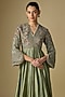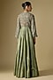 Jayanti Reddy features a stunning mint green anarkali, which is crafted in silk fabric with embroidery. Accessorise the designer anarkali with polki jewellery and heels for festive occasion, family gatherings or sangeet ceremony.