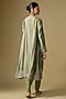 Jayanti Reddy features a stunning mint green kurta set, which is crafted in silk fabric with embroidery. It is paired with pants. Accessorise the designer set with polki jewellery and heels for festive occasion, family gatherings or mehendi ceremony.