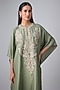 Featuring a mint green kaftan in silk base with thread work. It is paired with palazzo. Accentuate it with polki earrings and block heels for festive celebrations, pooja or mehendi ceremony.