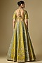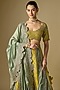 Mint & Mustard Raw Silk Embroidered Lehenga Set