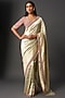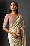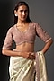 Featuring a mint peach saree in banarasi base with zardosi embroidery. It is paired with an embroidered blouse. Accentuate with statement jewellery and heels for a festive occasion or sangeet ceremony.