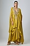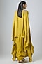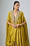 Featuring a mustard cape in silk base with embroidery. It is paired with a cowl skirt. Accentuate with statement earrings and heels for a festive look.