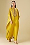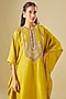 Featuring a mustard kaftan in silk base with zardosi embroidery. It is paired with palazzo pants. Accentuate with statement earrings and heels for festive ceremonies.