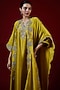 Featuring a mustard kaftan in silk base with zari embroidery. It is paired with an embroidered cape and palazzo pants. Accentuate with dangler earrings and heels for a festive or engagement ceremony.