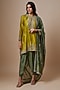 Featuring a mustard kurta in silk base with zari embroidery. It is paired with mint green dhoti pants and a dupatta. Accentuate with statement jewellery and heels for a complete festive ready-look.