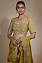 Featuring a mustard yellow saree in silk base with zari embroidery. It is paired with an embroidered blouse. Accentuate it with statement earrings and heels for a festive look.
