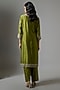 Featuring an olive green kurta in silk base with zardosi work. It is paired with palazzo pants and an embroidered dupatta. Accentuate with statement jewellery and heels for mehendi ceremonies.