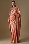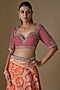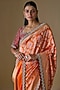 Featuring an orange saree in banarasi silk base with zardosi embroidery. It is paired with an embroidered blouse. Accentuate it with statement jewellery and metallic heels for an opulent look, perfect for a wedding, receptions or engagement ceremonies.