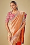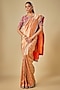 Featuring an orange saree in banarasi base with zardosi embroidery. It is paired with an embroidered blouse. Accentuate it with statement earrings and heels for a wedding, sangeet or engagement ceremony.