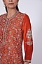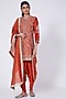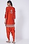 Featuring an orange short tunic in cheniya silk base with zardosi embroidery. It is paired with matching twill dhoti pants and a chanderi silk dupatta.