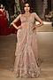 Featuring a pastel pink lehenga in net base with zardosi hand embroidery. It is paired with an embroidered blouse and an embroidered dupatta. Accentuate the designer lehenga with swarovski or zircon jewellery, embellished heels and a clutch for a bridal look, Perfect wear for destination weddings, engagement or sangeet ceremony.