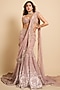 Pastel Pink Net Zardosi Hand Embroidered Lehenga Set