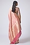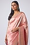 Featuring a peach saree in banarasi base with zardosi embroidery. It is paired with a blouse. Accentuate it with statement earrings and block heels for weddings or sangeet ceremonies.