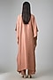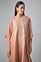Featuring a peach kaftan in silk base with thread work. It is paired with palazzo. Accentuate it with polki earrings and block heels for festive celebrations or pooja ceremony.
