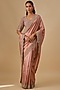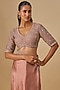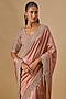 Featuring a peach saree in silk base with zardosi embroidery. It is paired with an embroidered blouse. Accentuate it with statement jewellery and block heels for weddings or sangeet ceremonies.