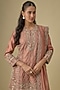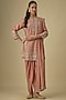 Featuring a peach tunic in silk base with zardosi embroidery. It is paired with a dhoti and an embroidered dupatta. Accentuate it with statement jewellery and heels for a wedding or sangeet ceremony.