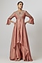 Featuring a peach anarkali in silk base with zari embroidery and fan sleeves. It is paired with palazzo pants. Accentuate it with statement jewellery and heels for festive occasions or wedding ceremonies.