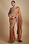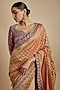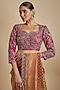 Featuring a pink saree in banarasi silk base. It is paired with a zari embroidered blouse. Accentuate it with statement jewellery and heels for a wedding or engagement ceremony.