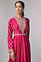 Featuring a pink anarkali in raw silk and silk base with zardosi work. Accentuate it with kundan polki earrings, a clutch and metallic heels for a stylish ensemble, ideal for festive occasions, cultural celebrations or sangeet ceremonies.