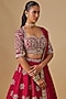 Featuring a pink lehenga in raw silk base with zardosi embroidery. It is paired with an embroidered blouse and a dupatta. Accentuate it with statement jewellery and block heels for weddings or sangeet ceremonies.