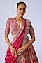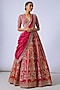 Featuring a pink lehenga in raw silk base with zardosi embroidery. It is paired with a blouse and a dupatta. Accentuate with statement earrings and heels for wedding ceremonies or a bridal look.