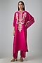 Featuring a pink kaftan in silk base with thread work. It is paired with palazzo. Accentuate it with polki earrings and block heels for festive celebrations or pooja ceremony.